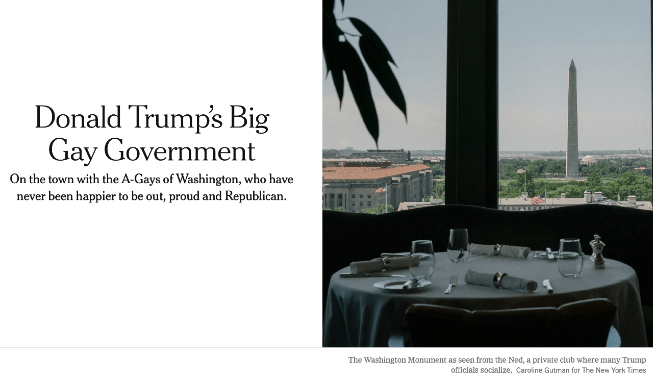 Donald Trump’s Big Gay Government by The New York Times will remind you – many power brokers of MAGA aren’t who you assume. Get smart on who is truly wielding power.