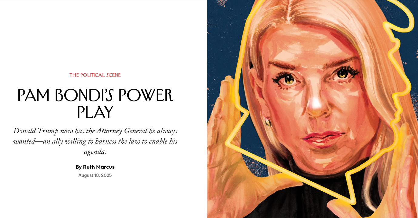 According to this extraordinary piece in the New Yorker, “in Pam Bondi, Donald Trump has the Attorney General he always wanted.” She is “ferociously sycophantic”. What does that mean for our Department of Justice?