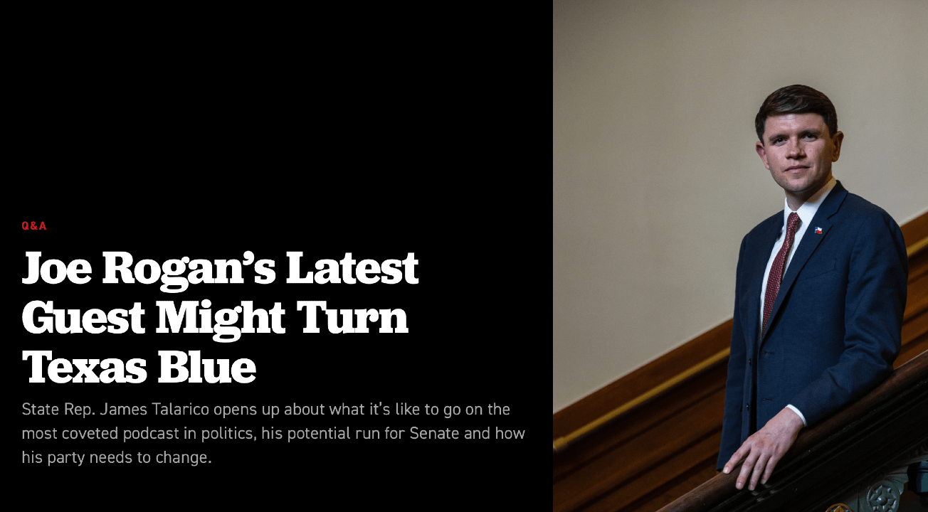 At Flip the States, we are focused on real chances to flip seats and take back power. For years, there’s been claims that Democrats will flip a state-wide Texas seat, but the truth is, it hasn’t really been close. Despite that, it’s worth checking out this profile on Democratic TX State Rep James Talarico in Politico. He just announced a run for Senate but what makes him interesting is how he represents the next generation of potential Democratic leaders, ones bringing their authentic selves – in this case, a highly religious man who is also willing to sit down with Joe Rogan – to their public service.